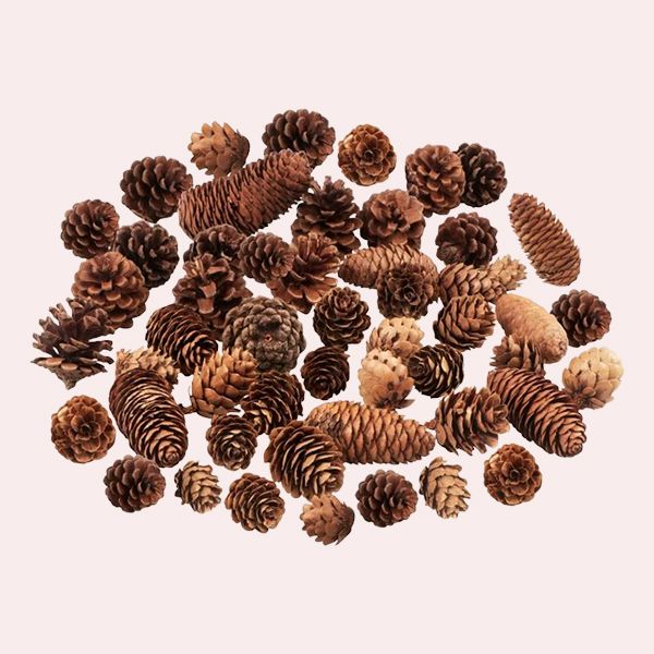 Este pack incluye 40 piezas entre las que hay piñas de varios tamaños, y conos de pino natural.