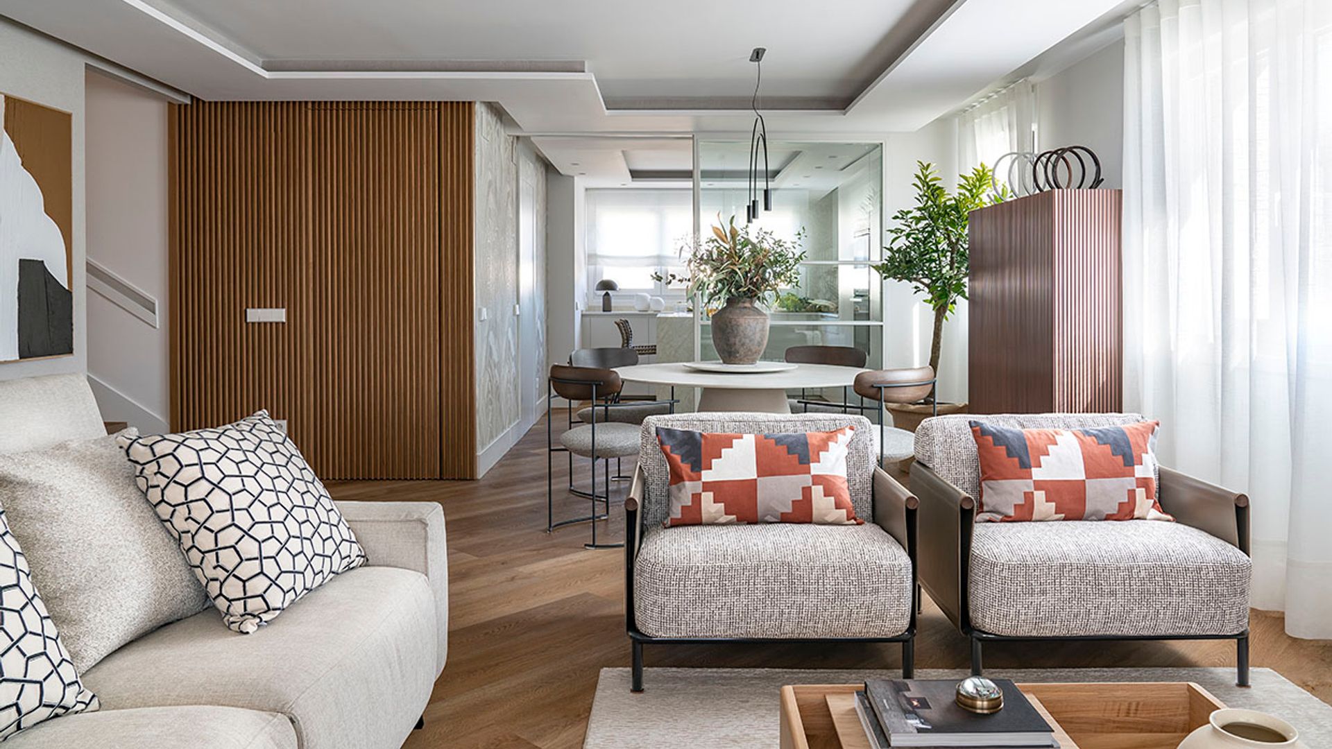 Este piso de obra nueva está ubicado en el madrileño barrio de El Cañaveral y se ha transformado para convertirse en un espacio a la medida de una pareja.Por Alejandra Muñoz Duarte