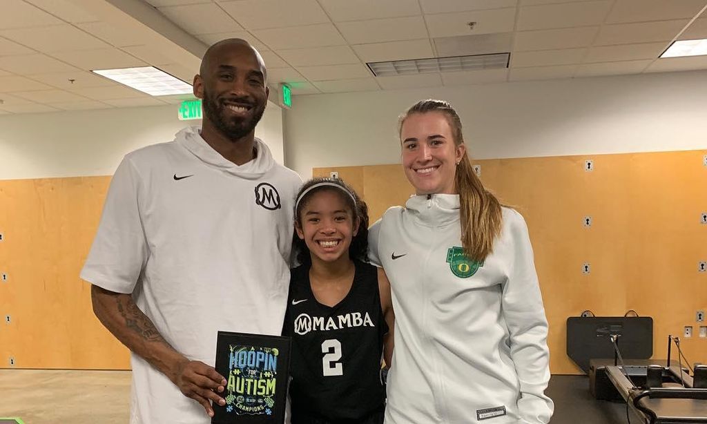 Para alentar su carrera en el básquetbol, Kobe llevaba a su hija a conocer a las estrellas de las universidades que practicaban ese deporte. En esta foto, Kobe y Gianna aparecen junto a Sabrina Ionescu, de Oregon.