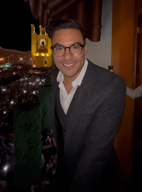 Rivera estuvo este fin de semana en Huamantla, Tlaxcala, de donde es originario, pues tuvo una presentación especial en la fiesta patronal. Desde un balcónen en el centro de la población, el intérprete cantó a la Virgen de la Caridad, cumpliendo así una promesa que había hecho años atrás, cuando iniciaba con La Academia su sueño de ser artista. Emocionado, Carlos compartió en sus redes sociales algunos vistazos de este momento, en el que cientos de personas fueron testigos. Sin embargo, él no viajó solo a este lugar, pues su esposa lo acompañó una vez más, apenas unos días después de que ambos visitaran juntos el Santuario de Luciérnagas, en otra población del mismo estado. El intérprete, firme en su decisión de reservarse los detalles de su vida privada, no compartió imágenes junto a su guapa acompañante, sin embargo, sus fans sí lo hiceron. Cuentas de fans publicaron fotos y videos de la feliz pareja en el balcón; Cynthia muy guapa enfundada en un vestido rojo. Y aunque la conductora no pudo evitar abrazar a su esposo ante la multitud, cuando los presentes insitieron en que se besaran, ellos optaron por enviar besos al público.