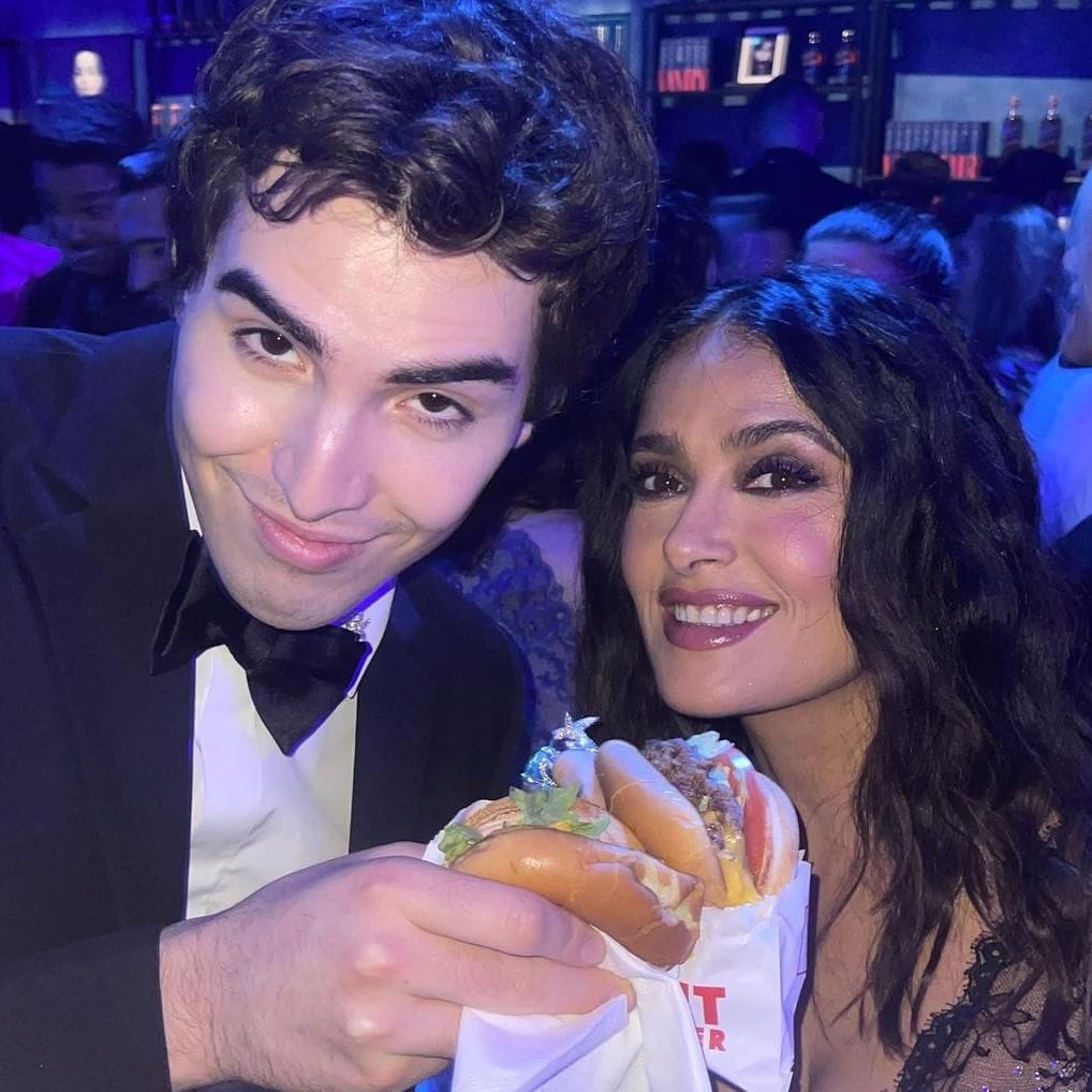 Dada su postura, no ha sido de extrañar que la intérprete se tome muy en serio alimentarse, y que pese al glamour de sus eventos, se dé el tiempo de comer. Por eso, luego de haber comido un poco tras la ceremonia del Oscar, la actriz quiso degustar otro bocadillo en la fiesta de Vanity Fair. Tess Bu, hija del cineasta Alfonso Cuarón y amiga de su hija Valentina, publicó una serie de instantáneas de gala de premios y del after party, incluida una foto en la que se veía a Salma lista para disfrutar una hamburguesa junto a Olmo, hermano de la joven.