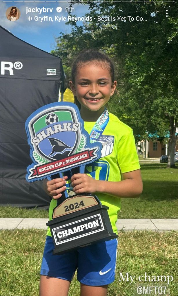 Finalmente, Jacky y Martín cerraron su emocionante fin de semana viendo a su pequeña renata conquistar un campeonato junto a su equipo de futbol. “¡Fin de semana de las Fuentes Bracamontes! Rematamos en Miami con un torneo de soccer de mi Reni, donde ¡quedaron campeonas por primera vez! ¡Felicidades campeonas! ¡MUY MERECIDO! (Reni daría lo que fuera por quedarse el trofeo ¡para siempre!!! Jajaja). ¡Muchas felicidades a TODO el equipo y por supuesto a nuestro coach Santi! ¡Eres lo máximo!”, señaló la también actriz.