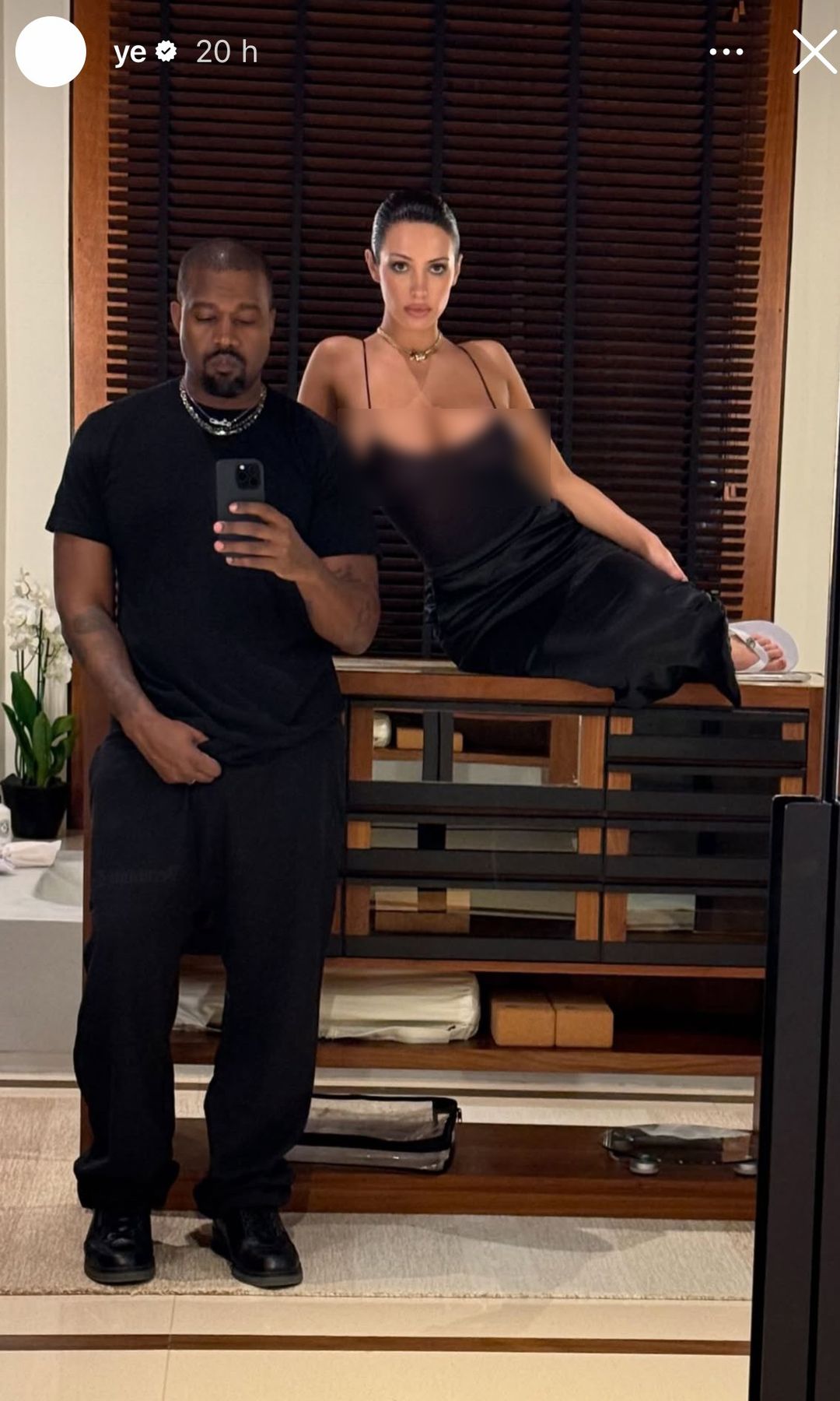 Kanye, quien en 2021 cambió su nombre a Ye, aparece en las imágenes con un look todo en negro; un pantalón y una t-shirt, mientras que Bianca, de 29 años, luce un vestido lencero semitransparente. En las fotos que compartió, se aprecia a la pareja posando de pie; él viendo hacia su celular creando la perfecta selfie de ambos frente a un espejo, mientras que ella mira fijamente a la cámara.
