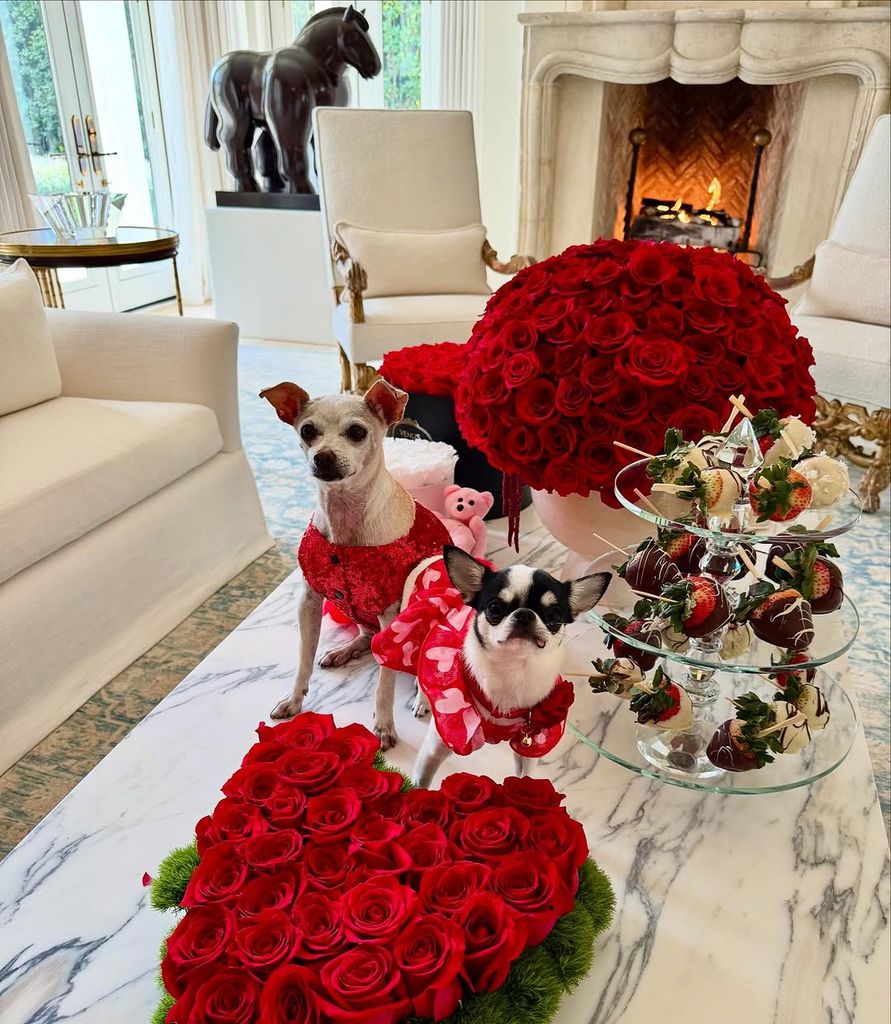 Sofía Vergara deseó lo mejor a sus seguidores con esta adorable postal de su mascota Amore y con Baguette, el perrito de su hijo Manolo Vergara. Los perros chihuahueños lucieron looks acordes a la celebración y posaron junto a unos ramos de rosas y unas fresas cubiertas de chocolate.