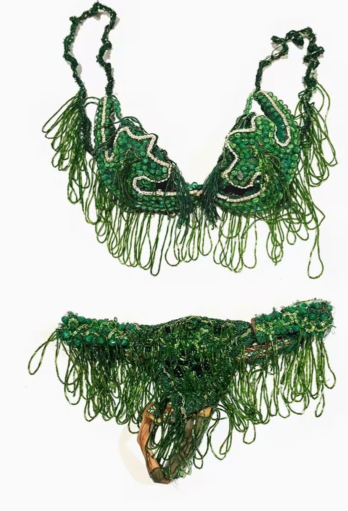 El bikini verde esmeralda con lentejuelas y flecos no fue solo una apuesta arriesgada, que realzaba su impresionante figura y su nuevo peinado. Fue un homenaje a Rossy, con el espectacular look creado originalmente en los años 70 por el famoso diseñador mexicano Mitzy (Jorge García Cárdenas).