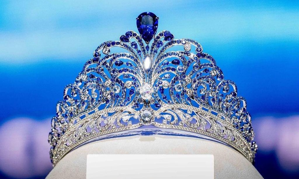 La corona cuenta con 110 quilates de zafiros azules y 48 quilates de diamantes blancos, engastados en motivos de ondas ondulantes. “Reflejan la necesidad del llamado al cambio que debe repetirse a través del tiempo”, explica la organización de Miss Universe a través de sus redes sociales.