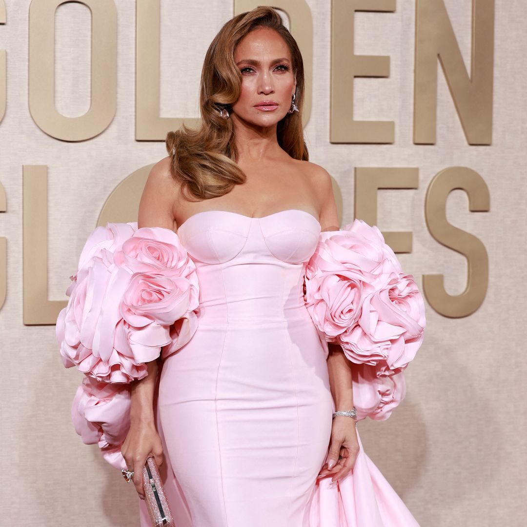 De la paleta de colores de las flores, JLo eligió el granate para los complementos y eligió unos tacones de punta y una muy linda bolsa Jackie Notte mini de Gucci. Sobre su beauty look, la famosa no mostró sus ojos, pues llevaba gafas y su cabello lo recogió en un prolijo atado.