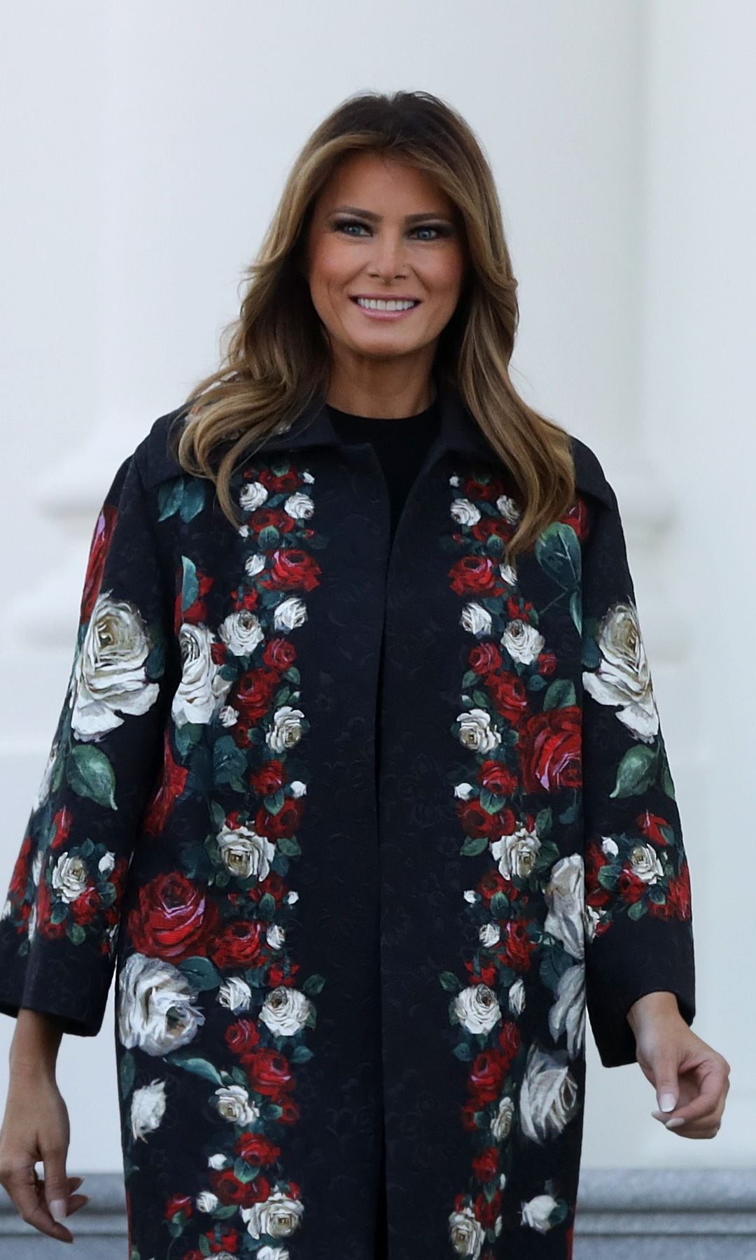 Si existe un estampado que es perfecto para esta temporada, vaya que lo tiene Melania. En 2018, disfrutó de estas épocas navideñas con un abrigo largo en estampado de cuadros rojo con negro de la firma Michael Kors. Finalmente, complementó con botas de Louboutin.