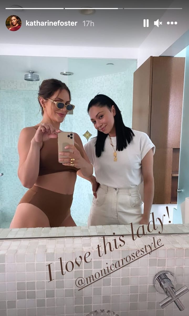 On Tuesday, the former American Idol singer posted to her Instagram stories a photo of herself in the mirror posing in a brown one-shoulder, high-waisted bikini with matching sunglasses. Her dark hair was pulled away from her face and she accessorized with gold hoops.