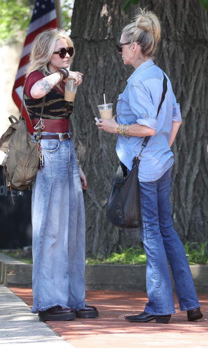 The famous daughter of Michael Jackson enjoyed an iced coffee with her friends on Monday, May 30, looking super cool in a pair of oversized shades, baggy, wide-leg jeans, and classic Dr. Martens boots.