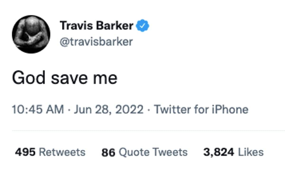 Travis Barker was hospitalized Tuesday morning in Los Angeles for an undisclosed health issue. The news comes after the drummer shared the cryptic and terrifying tweet, “God save me.”