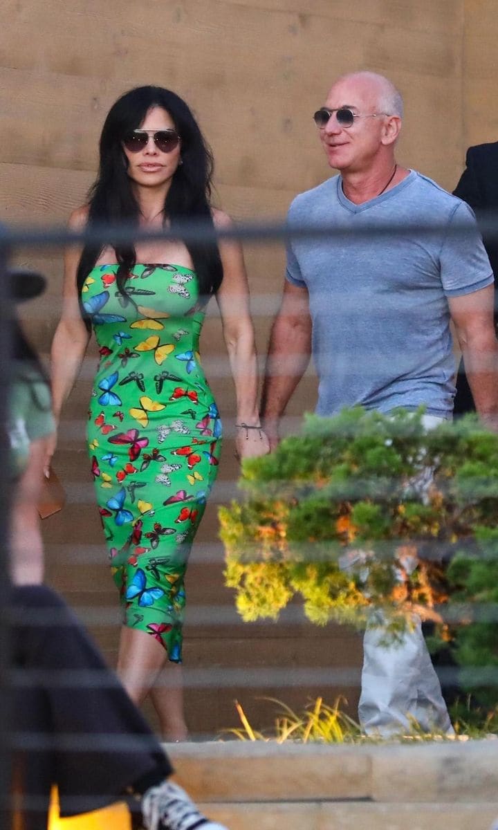Sanchez stole all the flashlights while wearing a summery body-hugging staples dress. The bombshell completed the look with dark shades and minimal accessories. Bezos kept things casual and fresh and rocked white pants with a sky blue T-shirt.