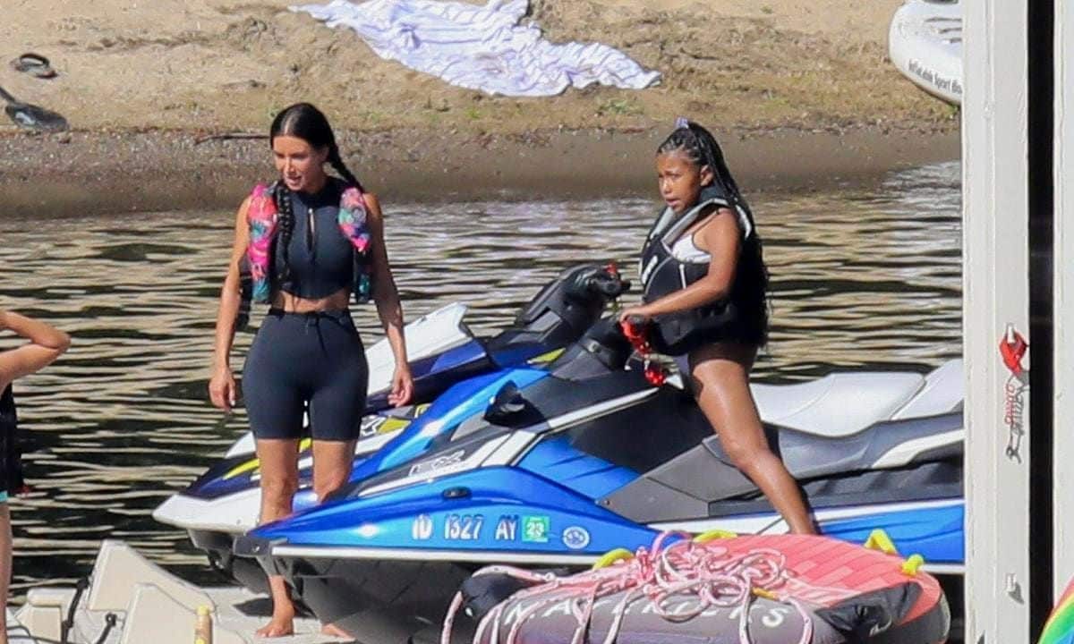 The two then rode the jetski, with North driving it around and Kim holding onto her back.