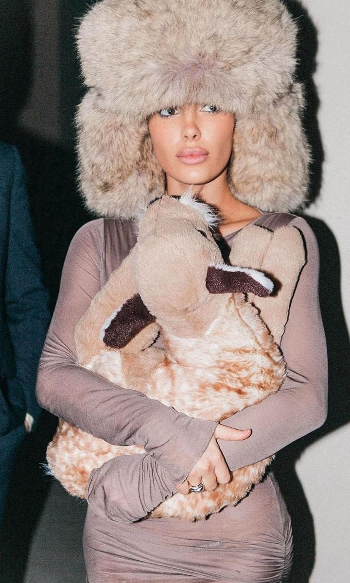 The Head of Architecture at Yeezy stepped out in a yet-again unique outfit with her husband. The pair attended designer Amina Muaddi’s pop-up store wearing a brown long-sleeved micro dress, paired with clear heels and a fur hat. Bianca also carried a stuffed animal as an accessory. Meanwhile, Kanye wore one of his signature all-black ensembles, including a leather coat and matching boots.