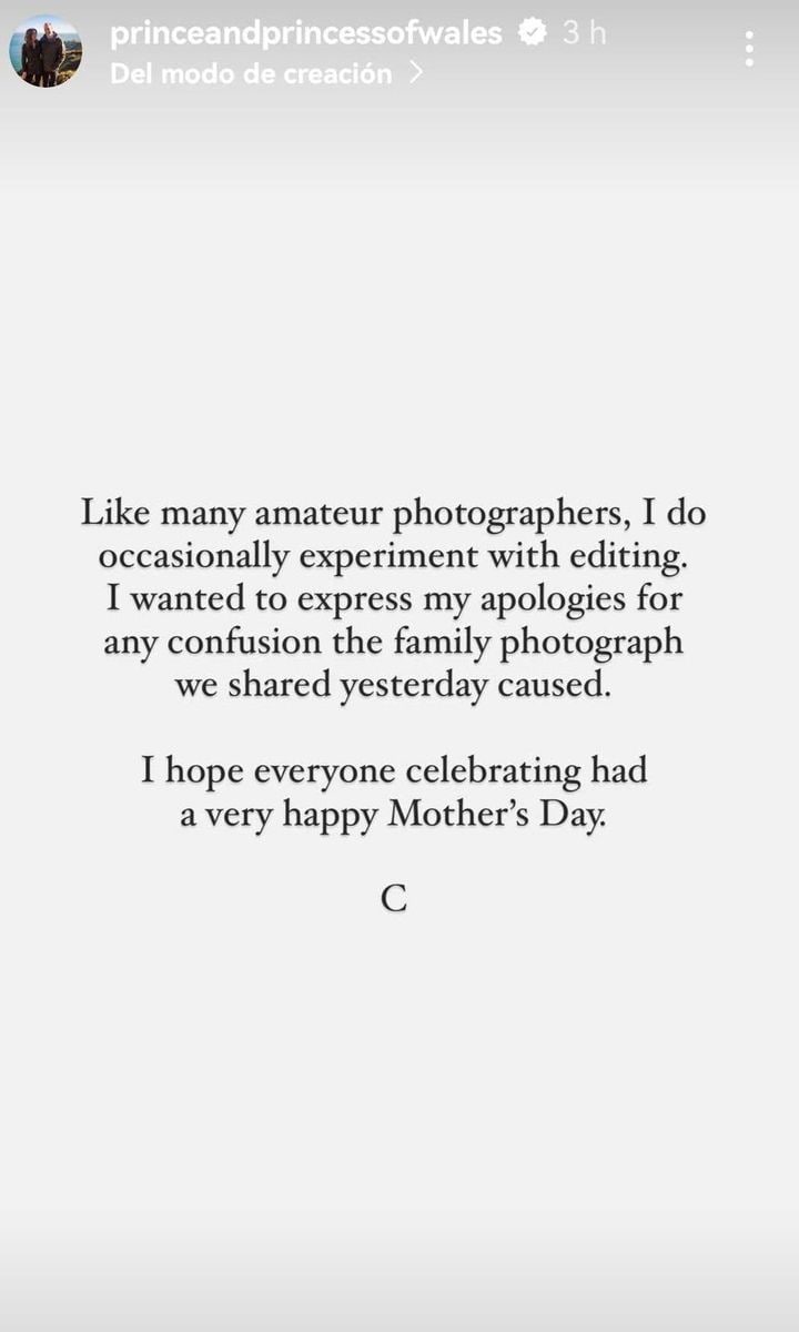 Mensaje de Kate Middleton© @princeandprincessofwales