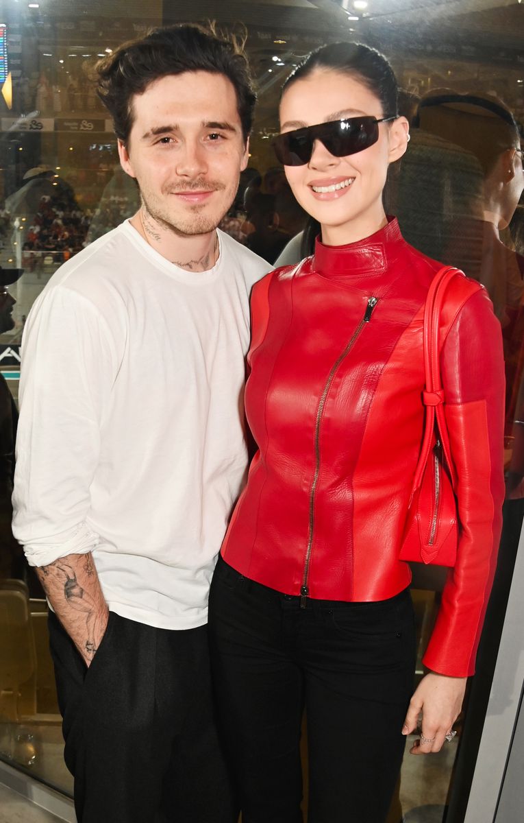 One of the images showed her and Brooklyn at the F1 Grand Prix. For the occasion, Nicola wore an appropriately red leather jacket that she paired with a matching purse, sunglasses, and black pants.
