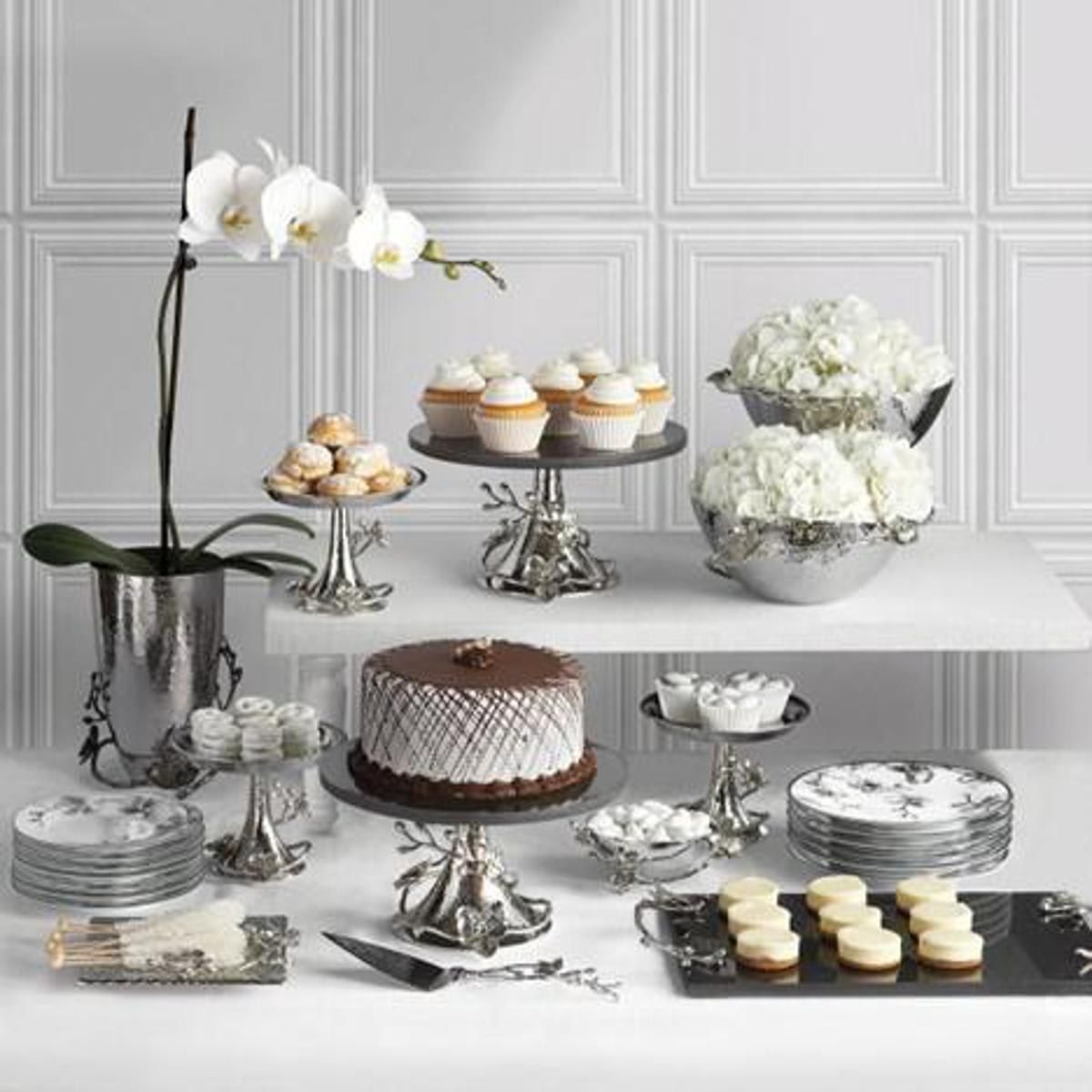 The MICHAEL ARAM White Orchid Serveware Collection has an abundant array of trays, bowls and serving sets to help create gorgeous tablescapes. Pieces from the collection coordinate beautifully, and the hammered white nickel orchid design will brighten table settings any time of year.