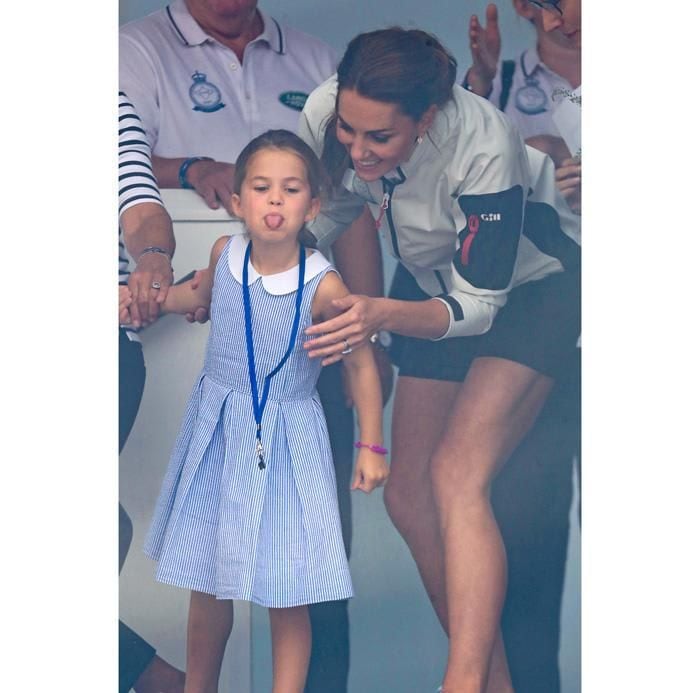 The royals and celebrities involved in the regatta each represented a charity that the royal couple support. The Duke sailed for Child Bereavement UK while his Duchess skippered a boat for the Royal Foundation. Other charity teams included Centrepoint, London's Air Ambulance Charity's 30th-anniversary campaign, Tusk, Action on Addiction, Place2Be and the Anna Freud National Centre for Children and Families. While Bear Grylls' team won the first race, William's team came in third and Kate's group placed seventh out of eight - which hilariously won her a giant wooden spoon!