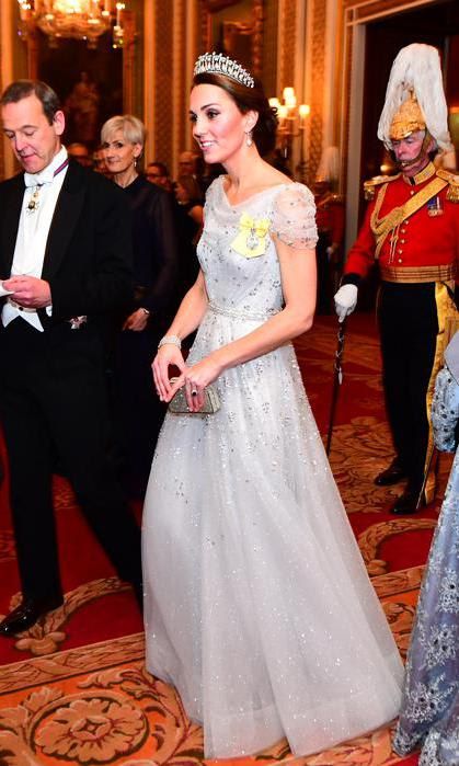 Last year, the Duchess looked like a Disney Princess come to life wearing a glittering white embellished gown by Jenny Packham, as well as her Royal Family Order and her late mother-in-law Princess Diana’s favorite tiara, the Cambridge Lover's Knot. Since marrying into the royal family, the Duchess has worn a tiara—officially—only 10 times, the first being on her wedding day in 2011.