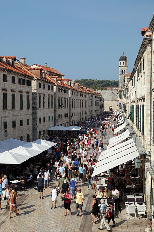 Entrando por la imponente puerta de Pile, hay que caminar sin rumbo fijo por las estrechas callejuelas y empedradas cuestas del casco viejo de esta ciudad abierta completamente hacia el Adriático y reconstruida como un milagro tras un pasado turbulento. A ambos lados de la Stradun –la ancha avenida enlucida de mármol que secciona en dos el casco antiguo– verás que salen al paso patios, monasterios, iglesias imprescindibles como la de San Blas, palacios como el de la Rectoría y monumentales fuentes como la de Onofrio. Y todo, sin coches a la vista.