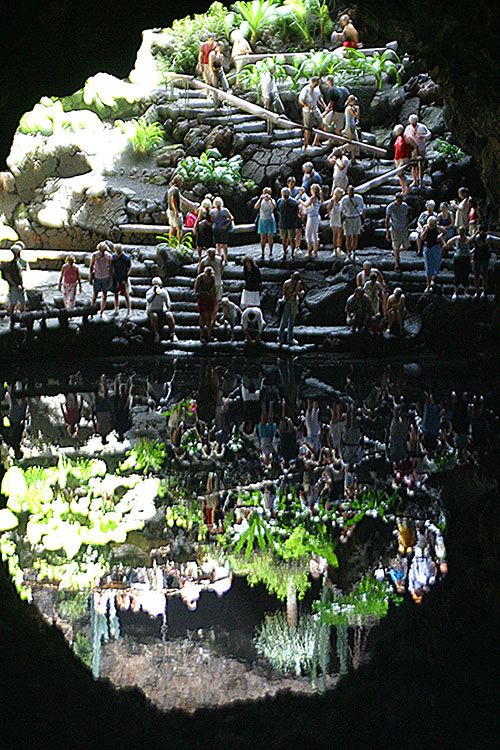 En el extremo nororiental de Lanzarote se sitúa uno de los tubos volcánicos más largos y bellos del mundo, originado por la erupción de un un volcán hace 5.000 años y que ha dado lugar a varias cavidades y una enorme gruta con un lago subterráneo donde habita habita una especie única en el mundo: el cangrejo albino. Los Jameos del Agua y la cueva de Los Verdes son dos parajes intervenidos por el artista César Manrique, que forman parte de este complejo y el que también se ha creado un auditorio natural para conciertos.