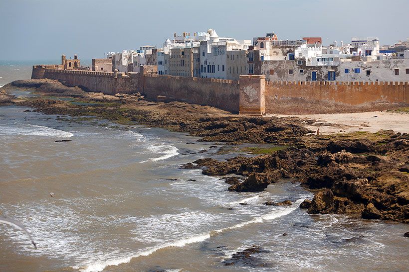 El litoral marroquí no solo merece la pena por sus exquisitos pueblos en azul y blanco sino también (y sobre todo) por sus playas, ideales para la práctica del surf. Es este aire marinero, con la estampa diaria de los pescadores reparando sus redes, el que otorga un encanto especial a esta ruta que comienza en Tánger y que no debe olvidar Asilah, un delicioso pueblo bohemio en el que, cada verano, se celebran festivales culturales. Después hay que hacer escala en Casablanca, con su mezcla de rascacielos y art decò, tal vez algo mitificada por la película de Humphrey Bogart. Y pasada Oualidia detenerse en Essaouira, la meca del windsurf, que es una auténtica maravilla. Un laberinto impecable de callejuelas y artesanos con una importante actividad pesquera y parrillas al aire libre donde degustar un marisco fresquísimo.