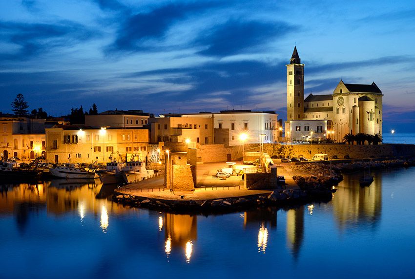 Separándose poquísimo de la costa para explorar el castillo perfecto de Castel del Monte, hacia el sur asoma Trani, con su fantástica catedral junto al mar, el encanto de su puerto y un casco viejo por el que buscar los rastros de su antigua judería. Y enseguida Bari, la capital, cuyas callejas de traza medieval quizá hayan visitado ya quienes aterrizaron en su aeropuerto. De ser así, podría continuarse hacia el despampanante pueblo de pescadores Polignano a Mare o el bastante parecido aunque más grande Monopoli, que, no, aquí no se trata de un juego. Lo que aguarda junto a sus murallas y su castillo aragonés es un abigarrado caserío encalado de arriba abajo y cercado de playas. Callejear su cogollo, también medieval, brinda una ocasión que ni pintada para iniciarse en el deporte nacional de la passeggiata. Es decir, el paseo de la tarde, que por estas tierras los vecinos jamás perdonan con, a ser posible, una granita o sorbete en la mano.
