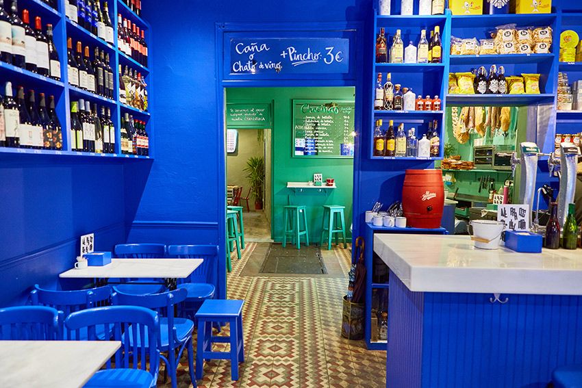 Vinoteca, tienda de ultramarinos, vermutería… esta taberna situada en la calle Espíritu Santo 19 es un lugar para comprar, pero también para degustar productos de primera calidad mientras charlas con amigos. Especializado en conservas gallegas y productos de la huerta, La Colmada (lacolmada.com) cuenta con vermuts caseros y marcas menos comerciales como Copini, Bandarra, Espinaler o Casa Mariol, una variedad exquisita para combinar con sus boquerones del cantábrico a la vinagreta, su lomo de orza con pimientos o sus sardinas ahumadas con salmorejo. Llama la atención los colores de sus diferentes espacios, azul y verde, que son ya su signo de identidad y que representan el origen de sus productos: el mar y la huerta.