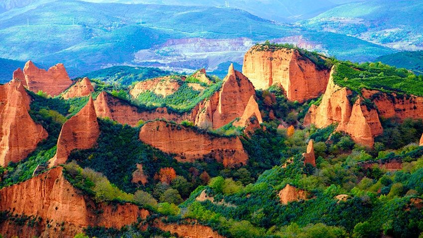 Recorrer a caballo esa tierra rojiza que los romanos descubrieron más allá del Esla hace dos milenios y está declarado Patrimonio de la Humanidad por la Unesco es una experiencia única (40 € por persona). La explotación de aquel tesoro de oro dejó un espectacular paisaje que podemos recorrer por sus senderos menos transitados empezando en Salas de la Ribera, a 27 kilómetros del Parador de Villafranca.