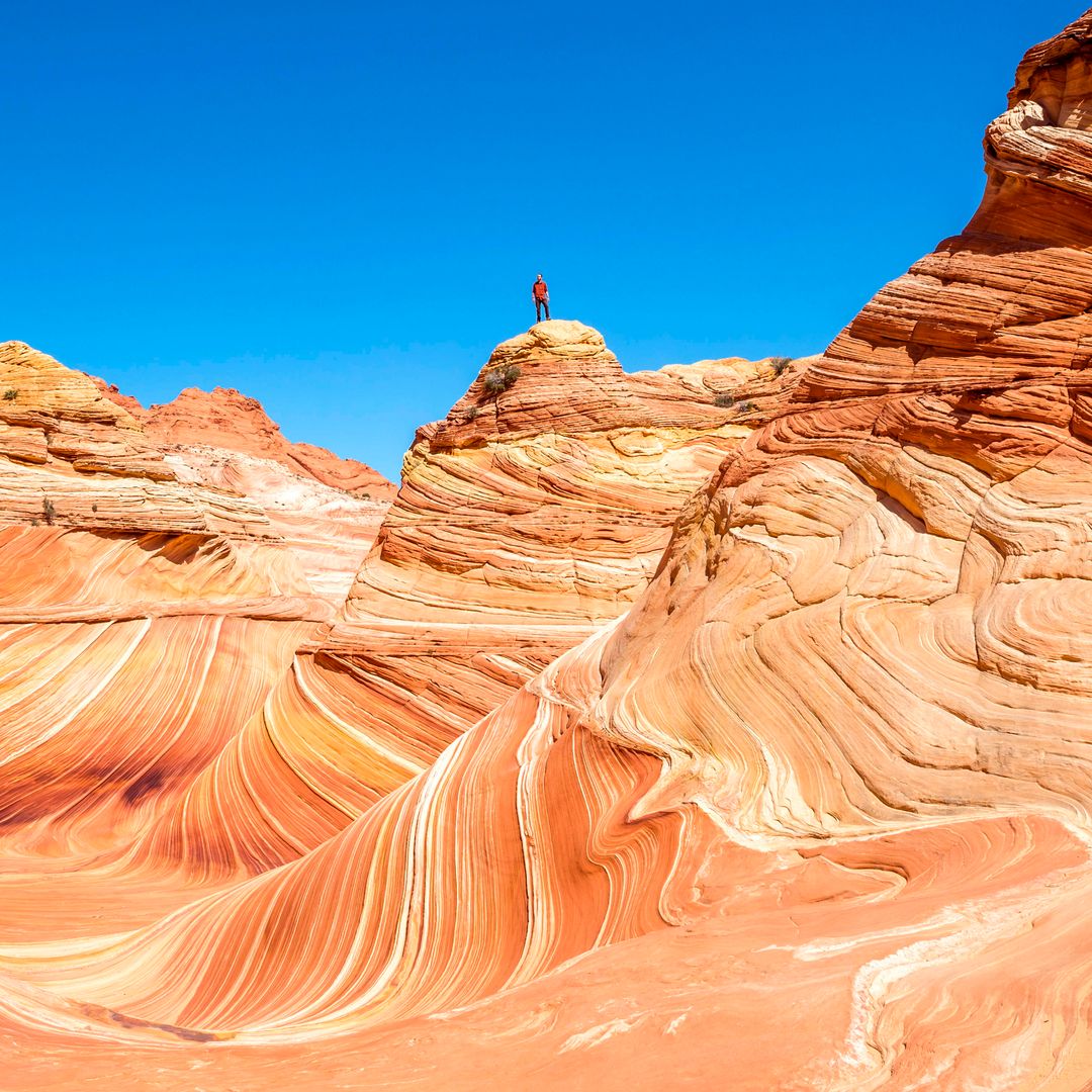 Una inmensa ola de piedra de tonos rosados y anaranjados se ha convertido en uno de los lugares más buscados por los cazadores de imágenes y paisajes únicos en el estado de Arizona, en los conocidos acantilados Vermilion, al oeste de los Estados Unidos. No es sencilla la caminada para llegar a The Wave y además hay que contar con un permiso para hacerlo (visitarizona.com) que se consigue mediante sorteo con meses de antelación. Nadie dijo que fuera fácil alcanzar lugares únicos en el mundo como este.