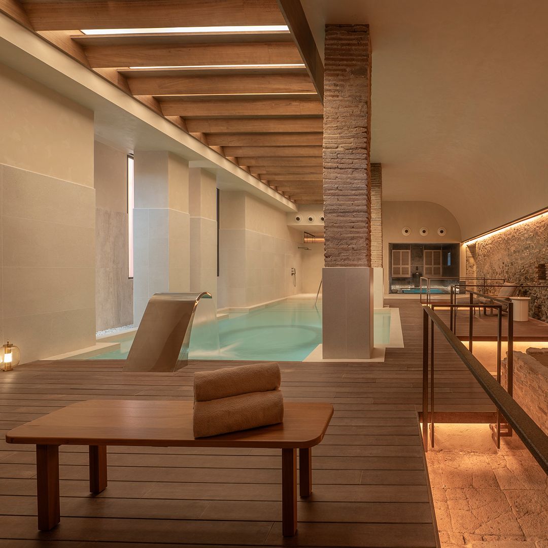 24 suites, 13 de ellas, ubicadas en el vetusto edificio —las demás fueron construidas a posteriori junto a la piscina y cuentan con jardín propio– conforman la oferta del hotel cuyo diseño, en la reforma, estuvo a cargo de Arquitectes i Associats y Astet Studio. Nos dejamos abrazar por los materiales nobles presentes en cada rincón, por los productos de alta gama que aseguran el disfrute del huésped —ahí están las sábanas de 600 gramos de algodón egipcio o las amenities de primeras firmas— y por la calma que se respira con solo mirar por la ventana al exterior. Son los viñedos, una vez más, los que se extienden por doquier hasta donde alcanza la vista.