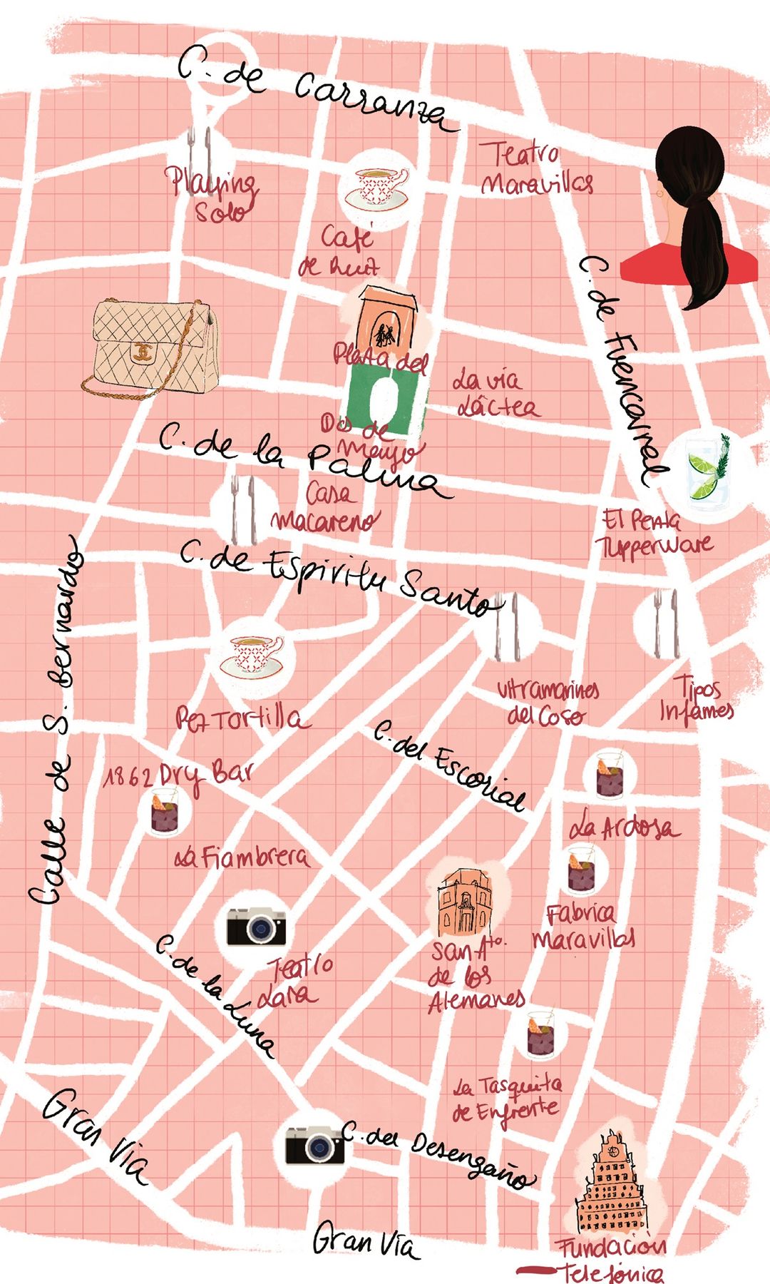 Pasa por el taller de Javier S. Medina (C. El Escorial, 28) y descubre sus trofeos ecológicos de fama internacional; y pide cita en Guille García-Hoz (C. de la Nao, 6) para llevarte una de sus preciosas esculturas cerámicas. DE BUEN COMER Desde la hora del vermut no cabe un alma en la centenaria taberna Casa Camacho (C. San Andrés, 4).